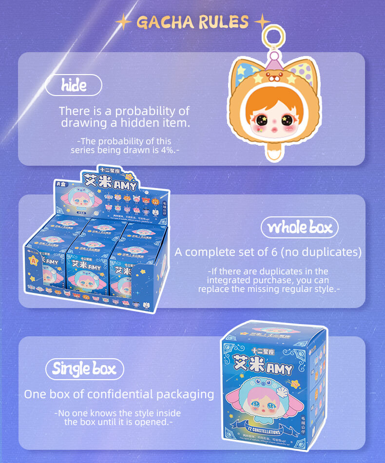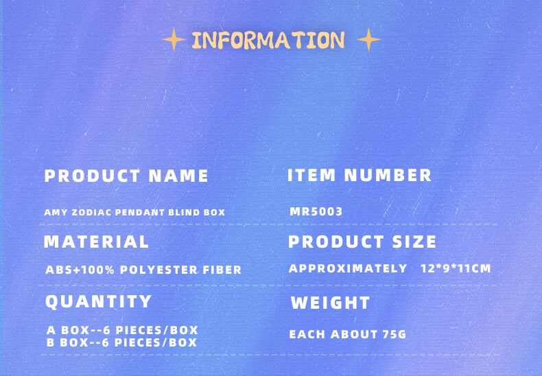 En el universo con muchas estrellas cada estrella es, como una persona especial. La empresa Zhejiang Meiyiyou Handicrafts Co., Ltd. Hizo algo llamado Amy y Samuel. Ahora están vendiendo la serie Twelve Zodiac de cajas ciegas. La serie Twelve Zodiac es realmente genial. Tiene cajas ciegas de peluche.