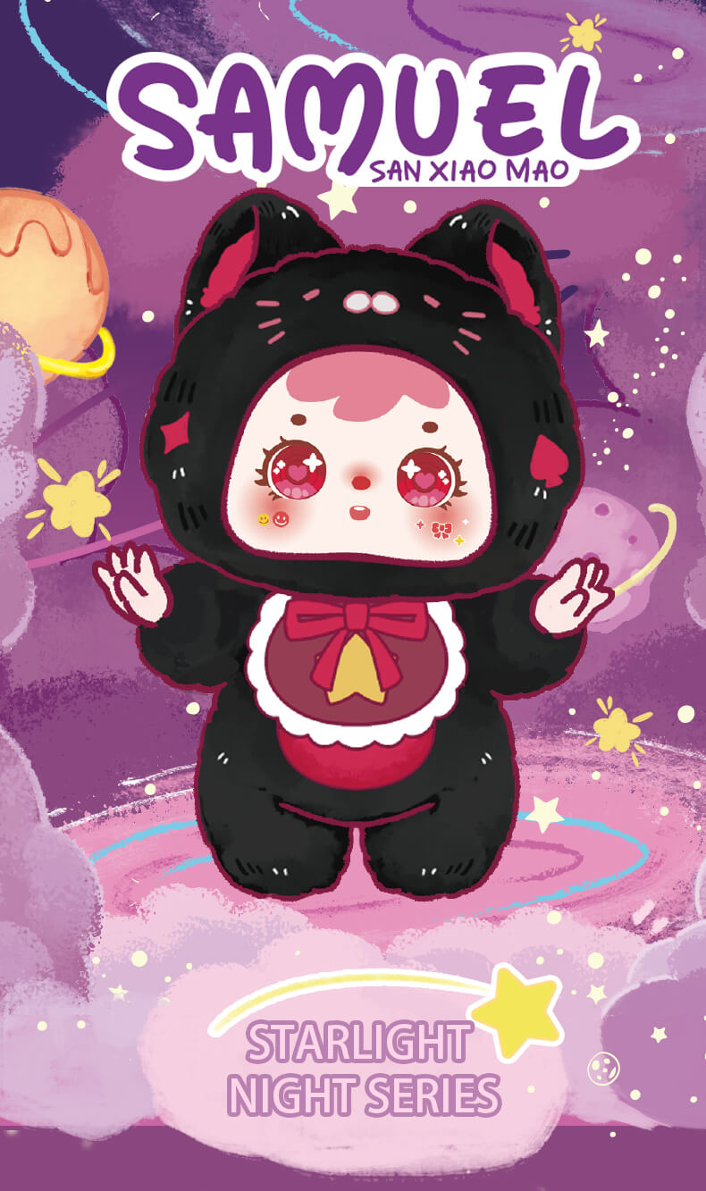 Samuela personnage IP original vibrant et amusant, est un petit ange stagiaire de Cloud Paradise. Son nom vient de ses trois petits bouchons de cheveux emblématiques sur sa tête - non seulement cette partie de son apparence adorable, mais elle porte également l'aura angélique de la magie guérissante. Avec son image douce et mignonne et sa chaleureuse mission angélique, Sanxiaomao a gagné le cœur de nombreux fans.Slogan de la marque : Avec Samuel, la vie est sans soucis.