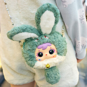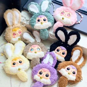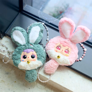 This series is about really bright colors. It combines a bunny with very vibrant colors. The series has 6 colors and 1 special hidden color that shines. The bunnies look really different from each other. You have the Sun Orange” bunny and the very calm “Mint Green” bunny. Each bunny has its special face and feels really soft and cuddly. The series is about these bunnies, with their bright colors.