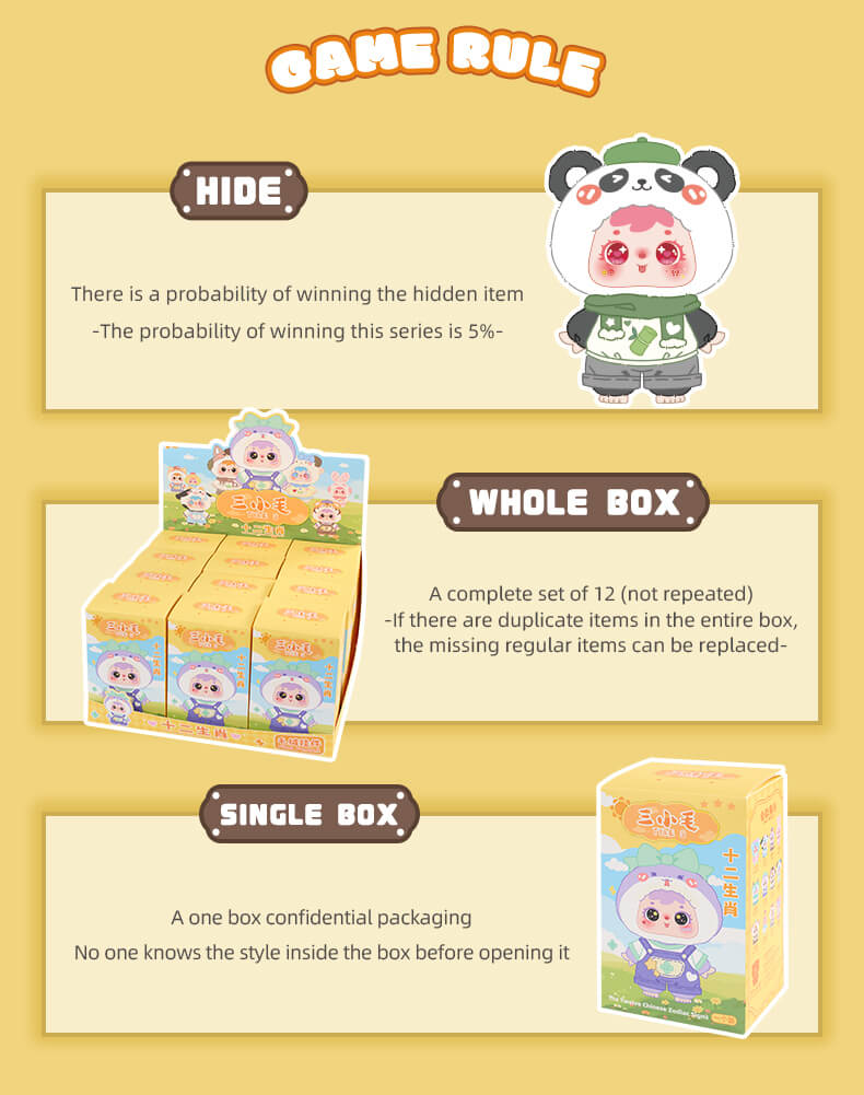 - The probability of a surprise: The fun of blind boxes lies in the unknown. We honestly disclose the probability of a hidden item: 5%. We hope that every purchase and unlocking experience you have is based on transparent and fair expectations.