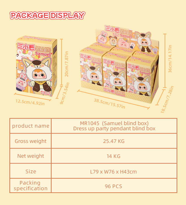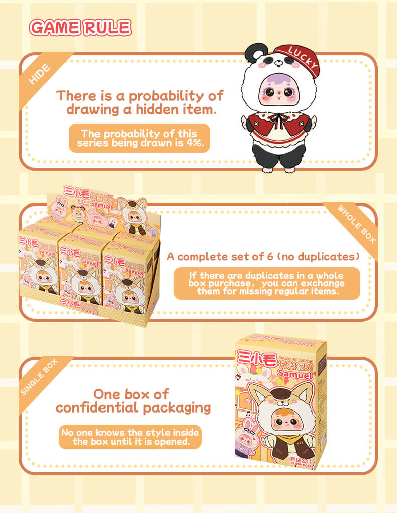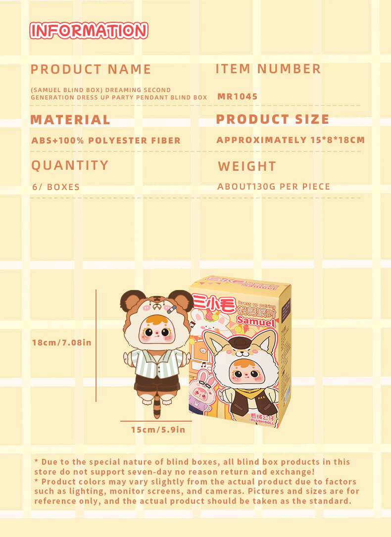 How to Play: Each blind box contains one Samuel doll and a set of exclusive clothing, plus additional accessories. The dress-up design is simple and quick, allowing children to easily and smoothly change outfits. Let Samuel accompany your child and fulfill their dreams with countless outfits!