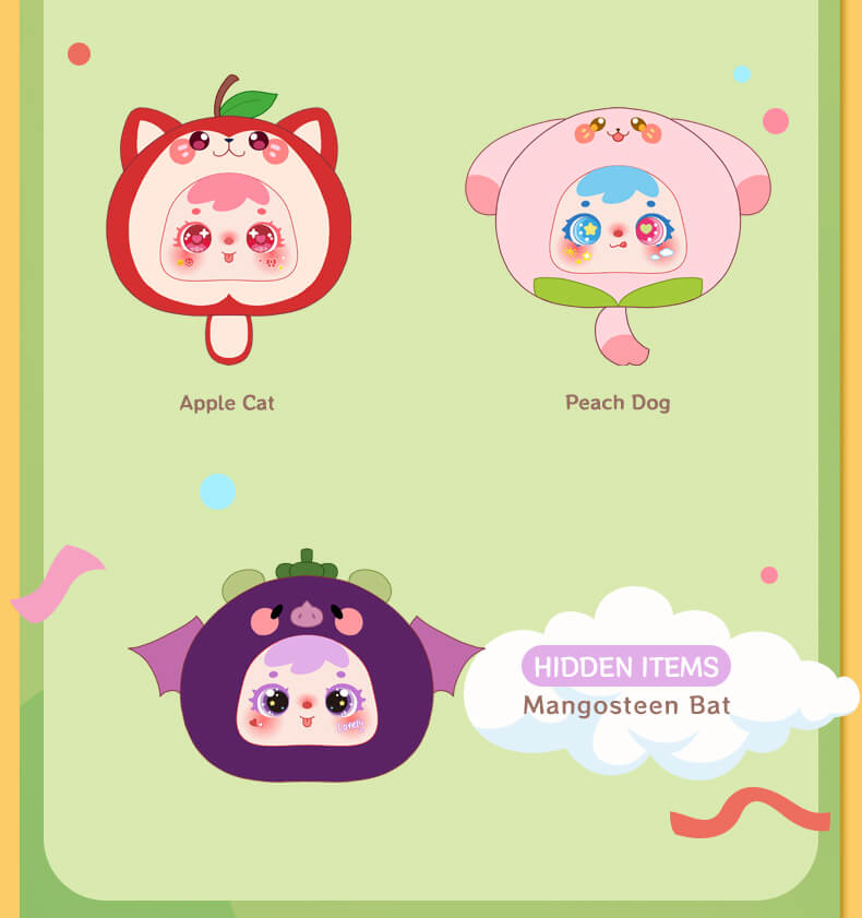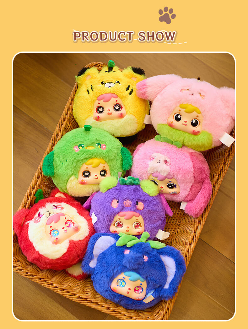 Introducing the creation from the Samuel Blind Box Family Series—Fruit Animal Paradise! This enchanting realm is bursting with creativity and bright hues. The design skillfully merges chubby charming fruit forms, with animal color patterns resulting in recognizable yet innovative "hybrid" little sprites each doll radiating its own distinct energy.