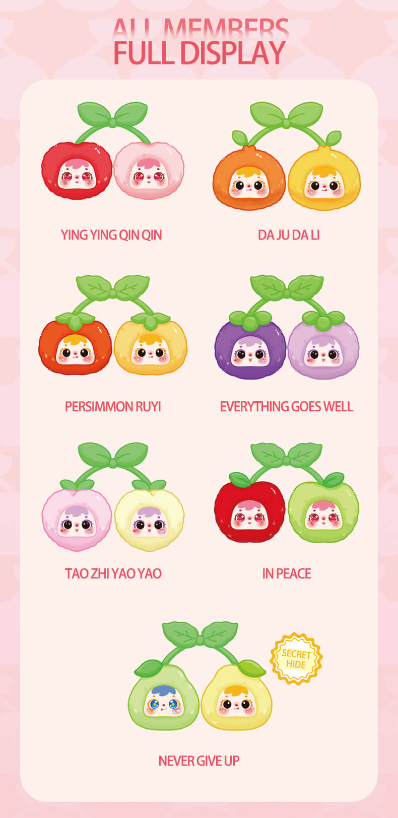 Open your “Fruit Brings Good Luck” blind box and collect these auspicious “Double Fruit Sprites,” letting them illuminate every lucky moment in your life!