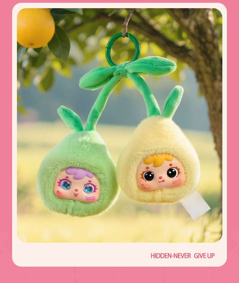 A first-ever design combining two fruits Introducing the new installment, in the Samuel Blind Box Family Series—Fruit Brings Good Luck! This collection is full of blessings and imagination. For the first time it smartly merges the lucky symbolism and distinctive forms of two fruits crafting a fresh and lively "Double Fruit Sprite " representing twice the prosperity and blessings delivering you double the joy and fortune.