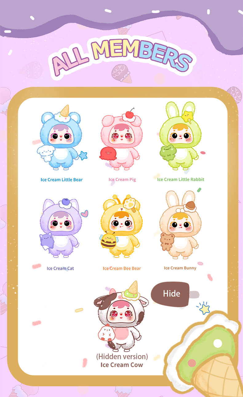 Open your “Hug” ice cream blind box, collect these soft and adorable sweet companions, and let them give you the warmest **hug** every day!