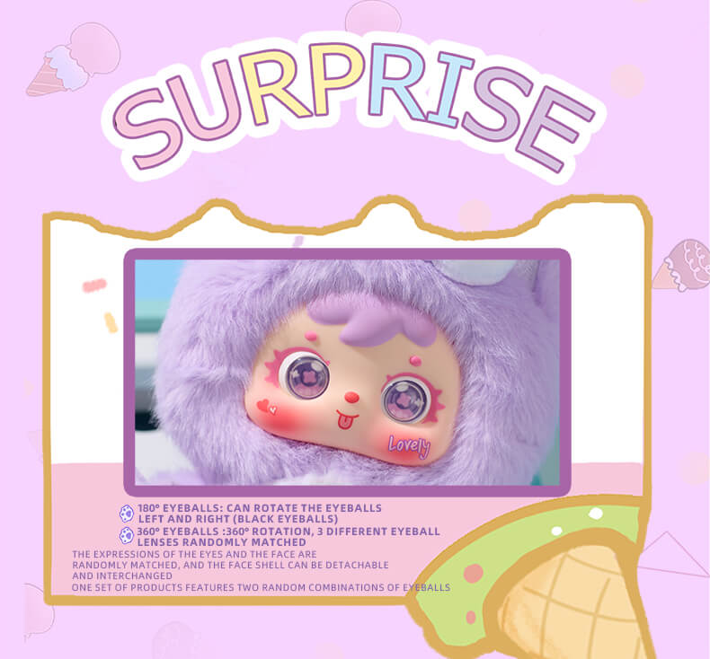 360° Rotating Eye Motion Expressing Affectionate Glance: The “Hug” ice cream features a 360° eye rotation mechanism. This versatile setup endows the doll with two ” eyes” capable of turning in every direction. You can effortlessly modify its gaze allowing it to display an expression yearning for a **hug** instantly opening up limitless interactive enjoyment.
