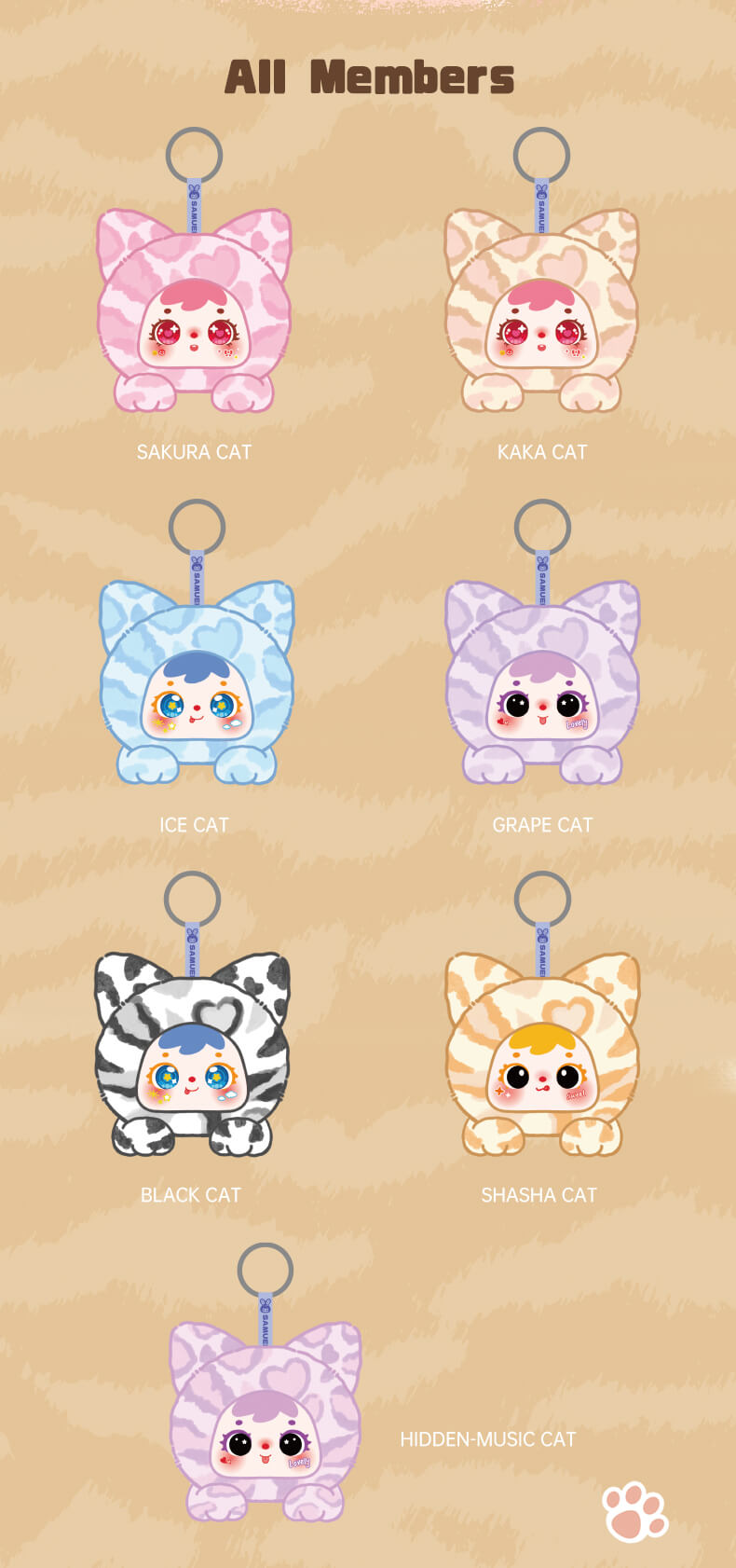Introducing the most endearing piece, in the Samuel Blind Box Family Series—The Adorable Moments of Cats! This collection accurately showcases the silly faces of cats when they are calm beautifully reflecting their essential allure as beloved family companions. Every plush toy reveals the genuine and comforting nature of cats.