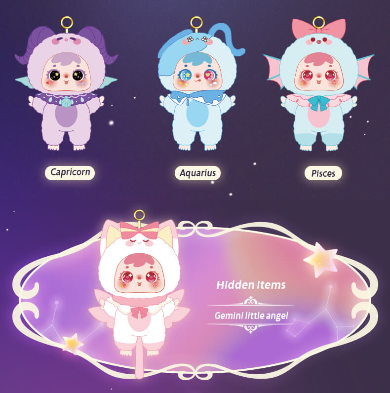 Cultural Scarcity: The series of blind boxes is a rare one in the market, which has successfully realized the theme fusion of cross-cultural twelve zodiac animals and twelve constellations, and at the same time, has very high value and topicality in design.